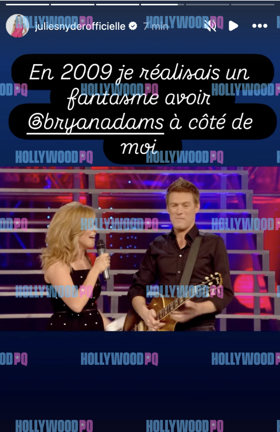 «En 2009, je réalisais un fantasme: avoir Bryan Adams à côté de moi», lance-t-elle sous une photo d'elle, micro à la main, pendant que le chanteur l'accompagne à la guitare.