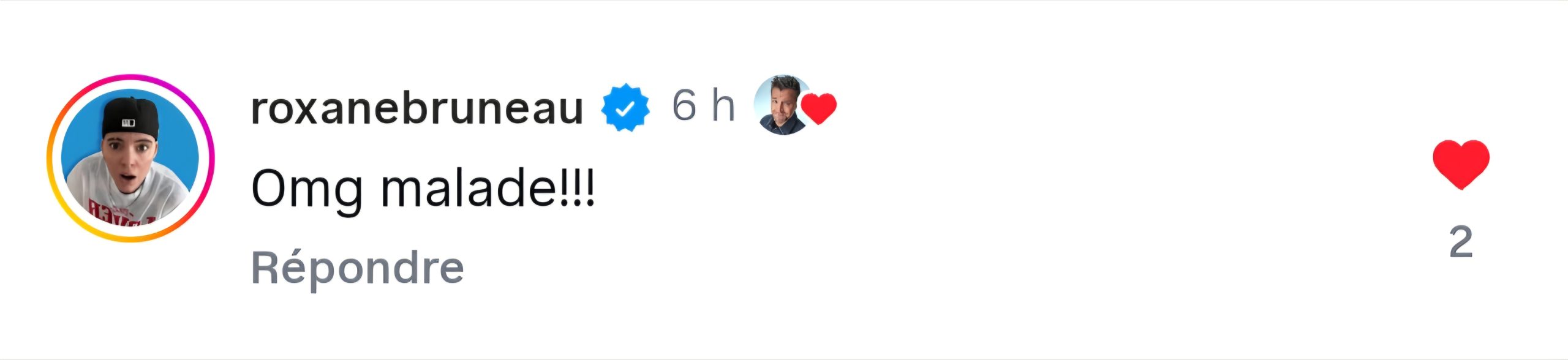 «Omg malade», répond la chanteuse Roxane Bruneau en commentaire.